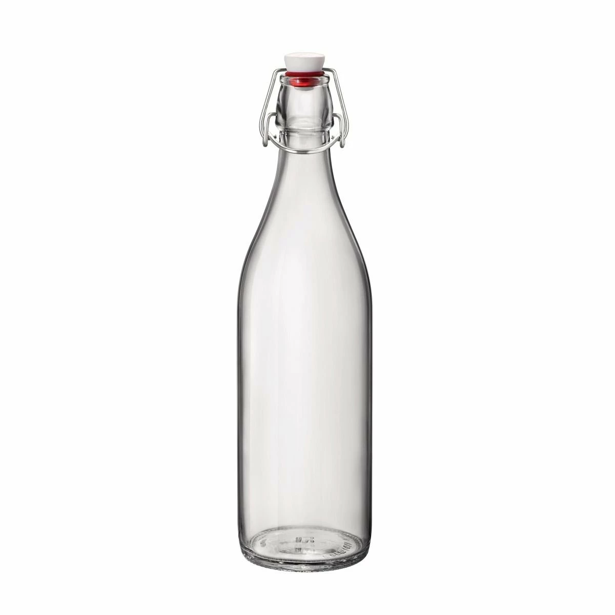 The Bormioli Rocco clear glass bottles are perfect for serving oils & vinegars, premixed cocktails and more! This swing top glass bottle has a 33.75 oz capacity and stands a tall 12″. An easy to use securing swing top glass bottle stopper keeps contents in the bottle and has a food grade stopper. The bottles long tapered neck makes for easy pouring. These glass bottles are made in Italy, and they’re also dishwasher safe. This glass bottle is also great for table decorations, home decor, and arts and crafts projects.
