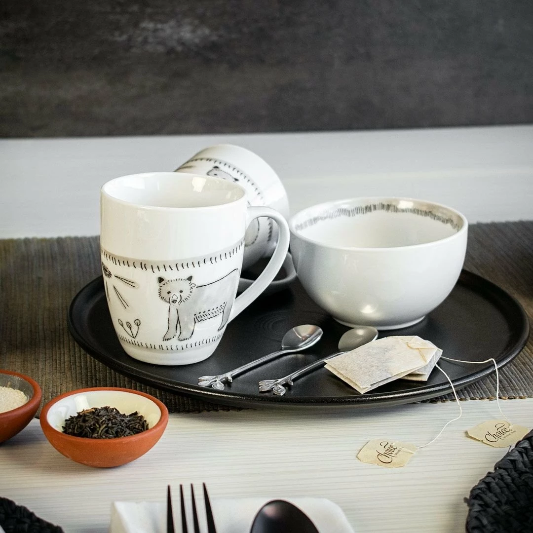 Do you love unique dinnerware but don’t want loud pieces that distract from your meal? Get the Bear With Me 16-Piece Dinnerware Set with Mugs from Everything Kitchens. This exclusive dinnerware set features a simple gray and white color palette that complements any kitchen decor. To add a little whimsy to the design, each piece features a unique combination of line-drawn flowers, sprigs, a butterfly, and the titular bear. This 16-Piece set comfortably serves four individuals. The Everything Kitchens exclusive dinnerware will add a rustic thread to your dinnerware collection while the soft gray tones retain a clean design that will appeal to a wide array of guests. Don’t wait, get this exclusive piece of Everything Kitchens dinnerware and add it to your table today!