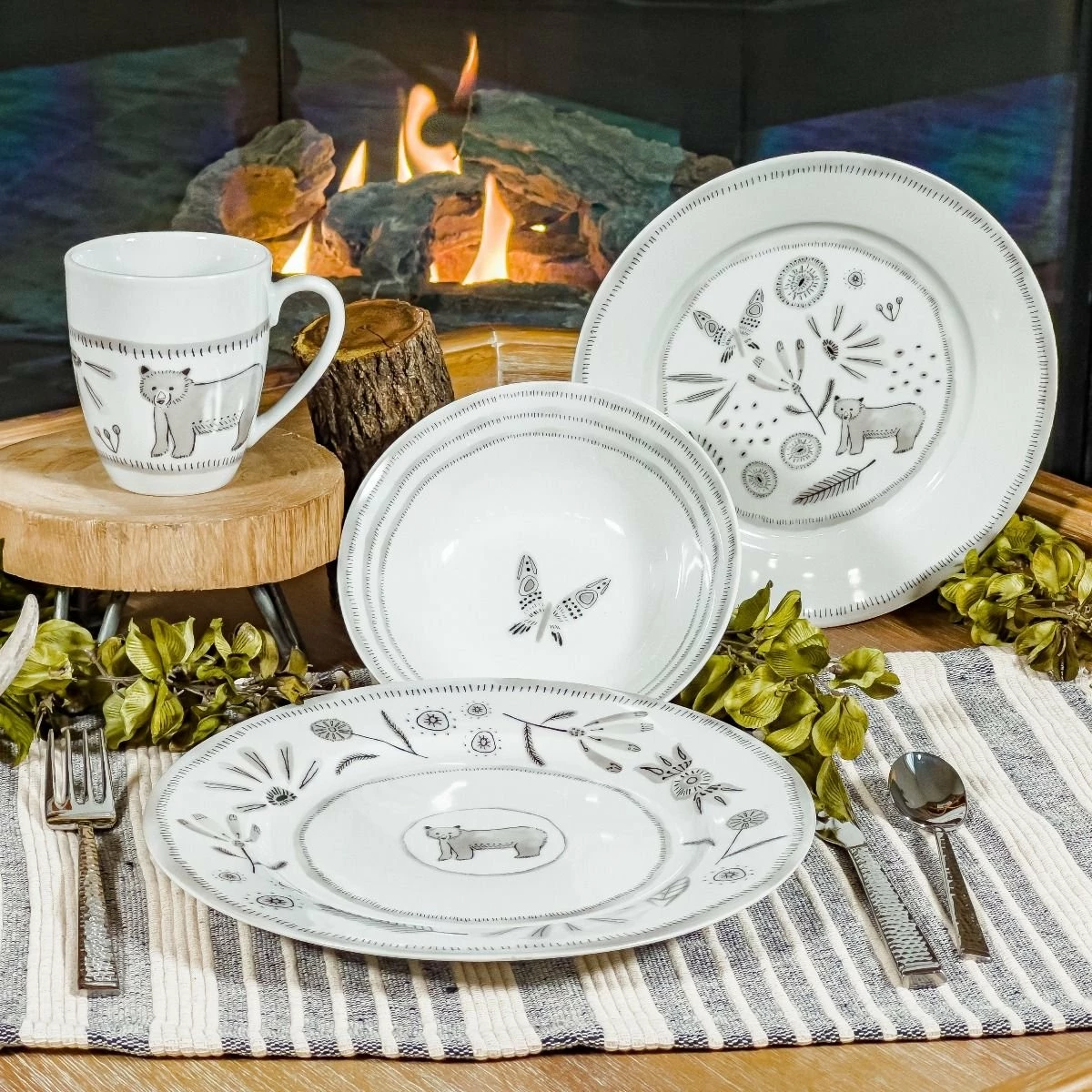 Bear With Me 16-Piece Dinnerware Set With Mugs Features: