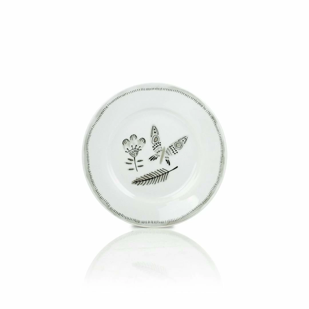 Do you love unique dinnerware but don’t want loud pieces that distract from your meal? Get the Bear With Me 7.5″ Side Plate from Everything Kitchens. This exclusive side plate features a simple gray and white color palette that complements any kitchen decor. To add a little whimsy to the design, each piece features a unique combination of line-drawn flowers, sprigs, a butterfly, and the titular bear. The side plate design features grey tick-marks along the rim and sprigs and flowers at the center. The Everything Kitchens exclusive dinnerware will add a rustic thread to your dinnerware collection while the soft gray tones retain a clean design that will appeal to a wide array of guests. Don’t wait, get this exclusive piece of Everything Kitchens dinnerware and add it to your table today!