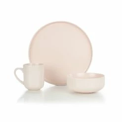Everything Kitchens Modern Flat 12-Piece Dinnerware Set – Soft Pink Features: