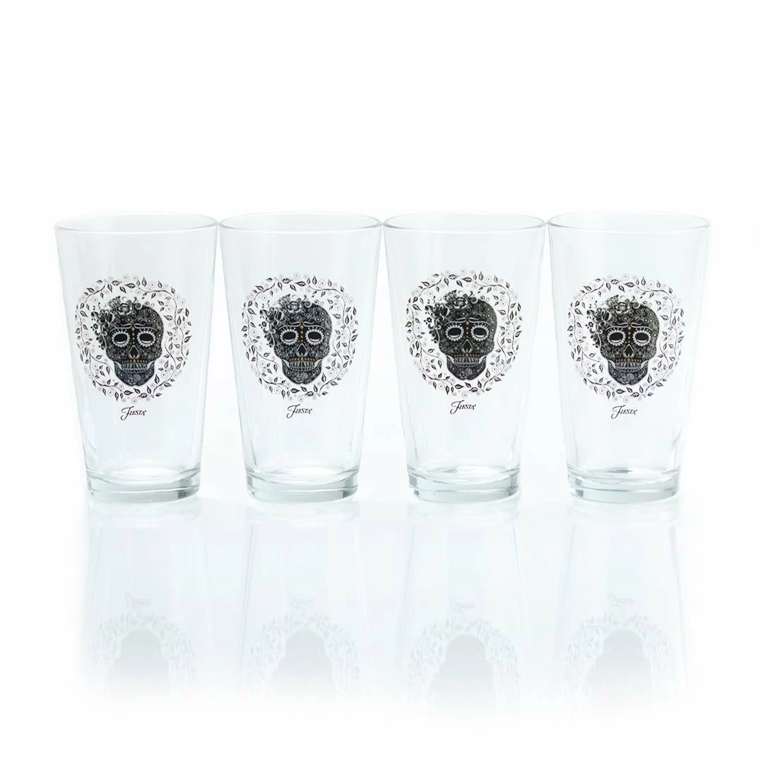 Enjoy the sweet taste of life … and the bitter taste of death! That depends on what you’re drinking, whether that’s grape juice, gin, or just some unsweet tea. Now, with the Fiesta® SKULL AND VINE 16-Ounce Clear Cooler Glassware Set, you can drink and celebrate both with an artistic symbol full of meaningful feeling: a blooming vine and a smiling skull. So, make a toast every day, or even on the Day of the Dead, for the blessings of spending quality time with friends and family or for the memories of loved ones long since passed. The glasses are also enjoyable around Halloween as fun, colorful additions to your dark, terrifying décor as you gobble down candy after candy. Made up entirely of clear, durable glass, the drinking glasses also set up nicely next to other similar dishware by Fiesta® in the cupboard or on the counter. Another thing to celebrate is each glass’s resilience to temperature changes, in that the dishwasher is a great option for cleaning after every use – that way, you can spend more time just relaxing instead. So, pull up a chair and pour some soothing homemade lemonade into any glass in the SKULL AND VINE 16-Ounce Clear Cooler Glassware Set by Fiesta®. This evening, dine with skull and vine!