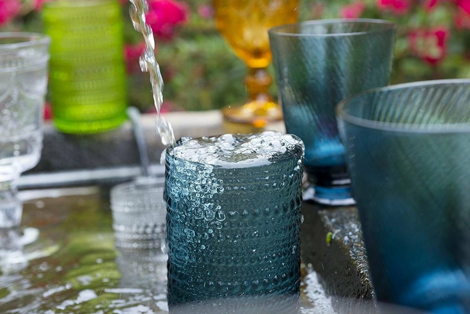 Add an eye-catching texture to your table setting with the D&V Jupiter Glass in alluring Cornflower. Inspired by vintage glassware found in Parisian flea markets, the D&V Jupiter Collection features an intricate beaded detailing around the glass for a unique presentation of any beverage. This vintage-style piece is made of durable, high-quality glass and has a sturdy, weighted base for a stylish piece of drinkware perfect for evening summer dinner parties and everyday dining. For a subtle touch of color that’ll give your table a vintage, French-style charm, try the D&V Jupiter Collection by Fortessa today!