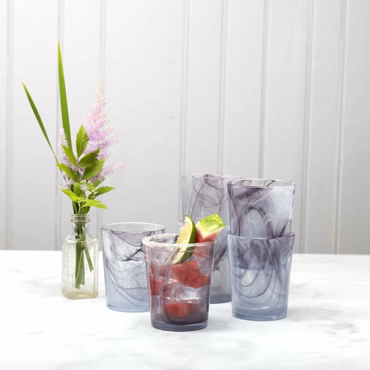 Bring the motion of the ocean current to your tabletop when sipping your favorite classic whiskey-forward cocktails with the Fortessa Swirl 11oz Double Old Fashioned Glass in Amethyst. Made of durable, high-quality glass, this 11 oz rocks-style glass is perfect for enjoying your end-of-day pour of bourbon, rye, or scotch, while also offering an elevated sip during cocktail parties and dinner parties to celebrate special occasions. Adorned with a hazy swirled pattern in a smoky amethyst that varies from opaque to translucent, each piece of the Swirl Collection will be a unique addition to your drinkware collection. For an oceanic finishing touch to your cocktail presentation, use the Fortessa Swirl 11oz Double Old Fashioned Glass in Amethyst!