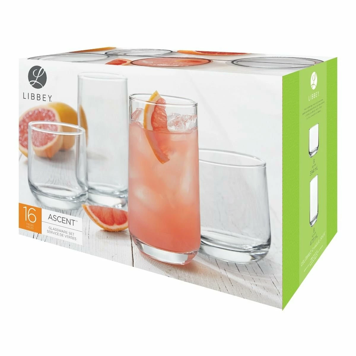 Libbey 16-Piece Glassware Set (Ascent) Features: