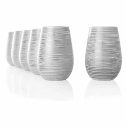 Stolzle 15.75oz Olympia Twister Glass Tumblers – Set Of 6 | White & Silver
