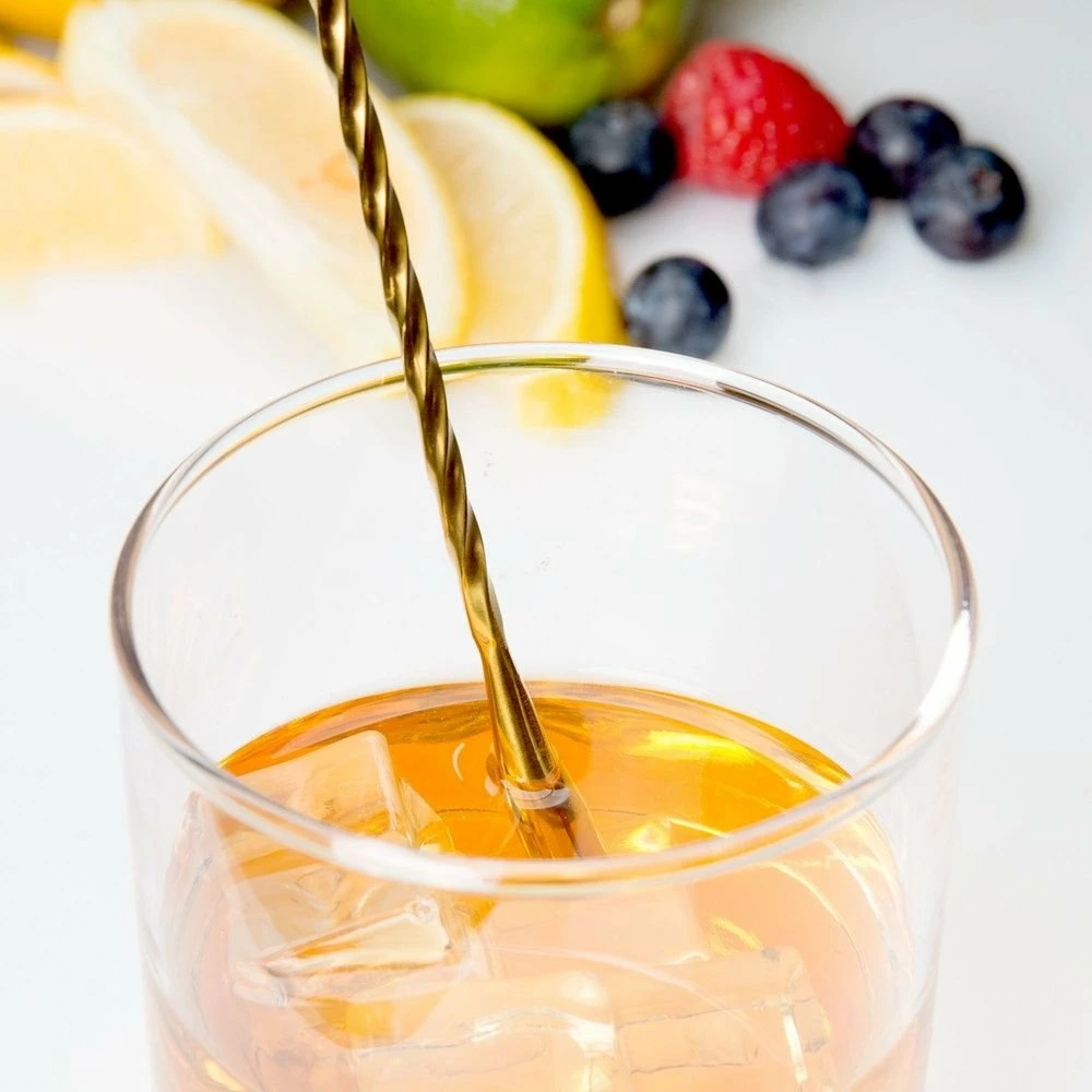Martinis. Manhattans. Old Fashioneds. Whiskey Sours. Mixing the classics for your cocktail-loving friends starts with reaching for classic bar tools from Barfly Mixology Gear by Mercer. Show your hand at smoothly mixing cocktails made to order or by the pitcher with the Mercer Barfly 11.8” Gold-Plated Classic Teardrop Bar Spoon M37012GD. Barfly’s beguiling bar spoon with the vintage design is made of a single piece of gold-plated stainless steel that won’t absorb stains or odors that could cloud the taste of fine spirits. This dual-use bar spoon has a precision-molded spoon on one end for accurate measuring, precise pouring, and gentle stirring; the other end is weighted with a classic “teardrop,” a perennial favorite of professional bartenders for providing balance and easy mixing. The elegant spiraled handle is designed with a twist to gently blend ingredients without bruising, and at a stately 11.8” long, it’s perfect for tall drink glasses and pitchers. With such alluring looks and expert performance, Barfly Mixology Gear by Mercer can turn your kitchen into the neighborhood’s trendiest cocktail lounge.