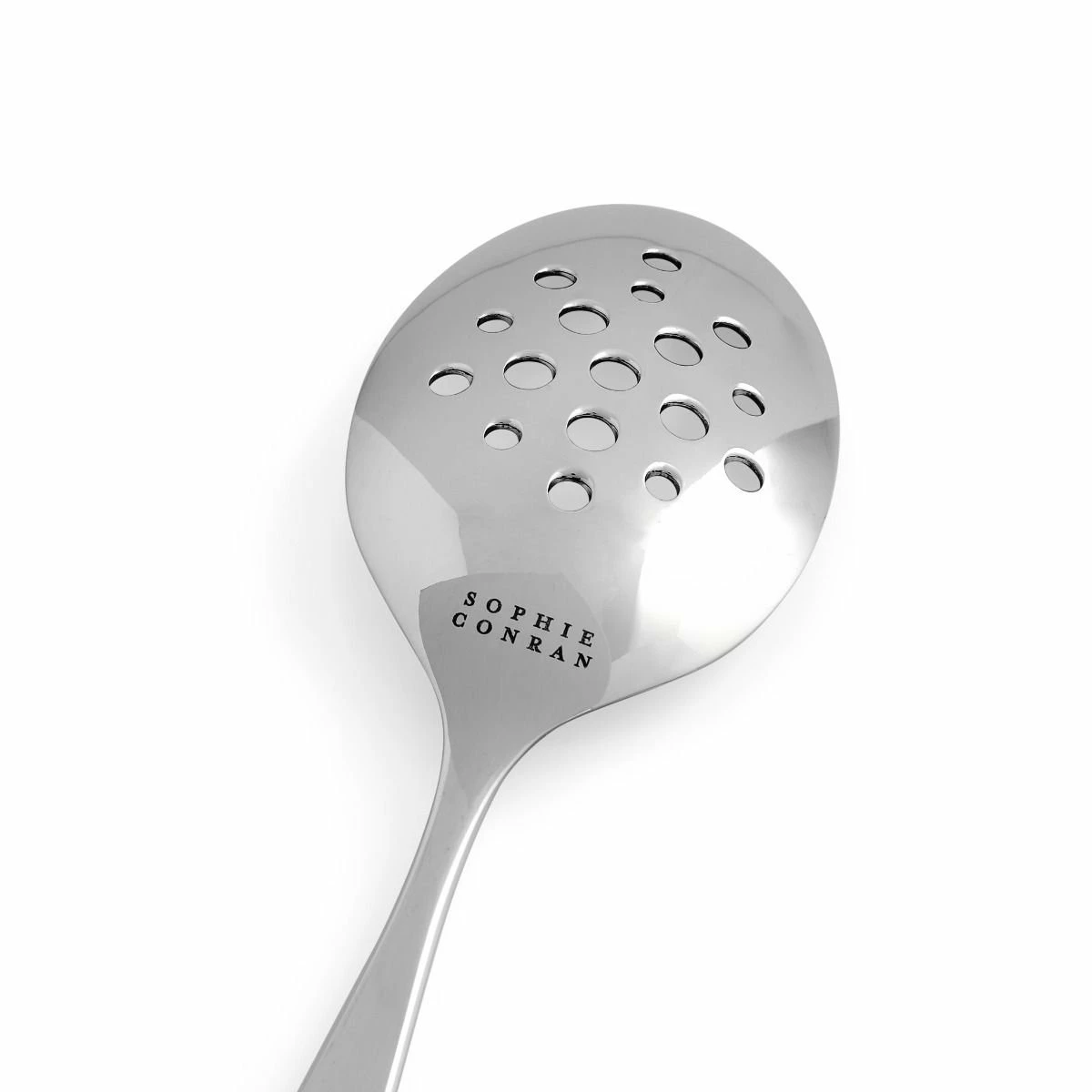 Add a simple piece of functional beauty to your serving flatware collection with the Portmeirion Sophie Conran Slotted Spoon in Floret. This spoon features an elegant, understated design that is practical for everyday use. The contoured handle is both beautiful and easy to hold. This spoon is perfect for serving and plating vegetables, meats, pasta, and more. Made from 18/10 stainless steel, this slotted spoon is dishwasher-safe. Whether you’re throwing a dinner party or enjoying a warm stew with your family, the Portmeirion Sophie Conran Slotted Spoon in Floret is a practical and tasteful choice.