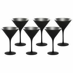 Stolzle 8oz Olympia Crystal Martini Glass Set of 6 (Black & Silver) Features: