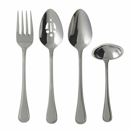 When you’re looking to make a sumptuous, refined statement, set the table with the Merlemont 4-Piece Serving Set by Villeroy & Boch. The serving set’s clean lines, mirror finish, and alluring curves add sleek elegance to your daily dining. This 4-piece hostess set includes a meat fork, serving spoon, vegetable spoon, and gravy ladle to ensure that you’re prepared for hungry guests. Simply designed, this durable, rust-resistant serving set uses well-known 18/10 stainless steel for everyday performance you can trust. With the Merlemont hostess set, you can guarantee that you’ll always have just what you need to serve helpings of creamy mashed potatoes, fresh vegetables, pot roast, and much more!